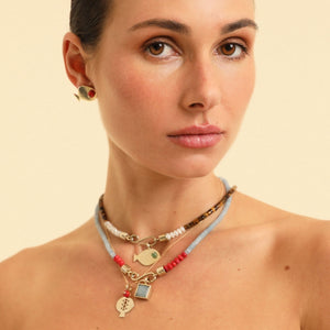 2. To finish, use our polishing cloth to remove patina and restore shine. Maintaining long up and down strokes to clean the jewellery. Be sure to use different parts of the cloth to avoid spreading any tarnish.