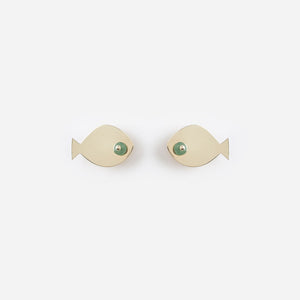 Brass studs with titanium pins and coral or aventurine stones.