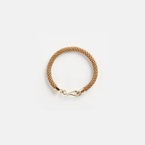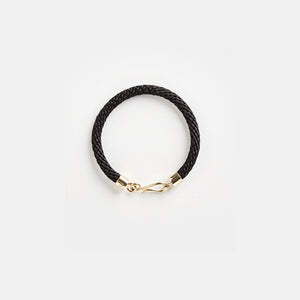 Braided rope with a brass clasp.